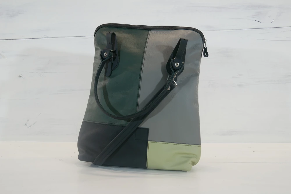 Velká kabelka typu Tristan je vyrobena kompletně z kůže (šedá, černá, tmavě zelená, světlá zelená). Má dvě držadla a odepínací řemen přes rameno se zkracovačem v černé barvě.