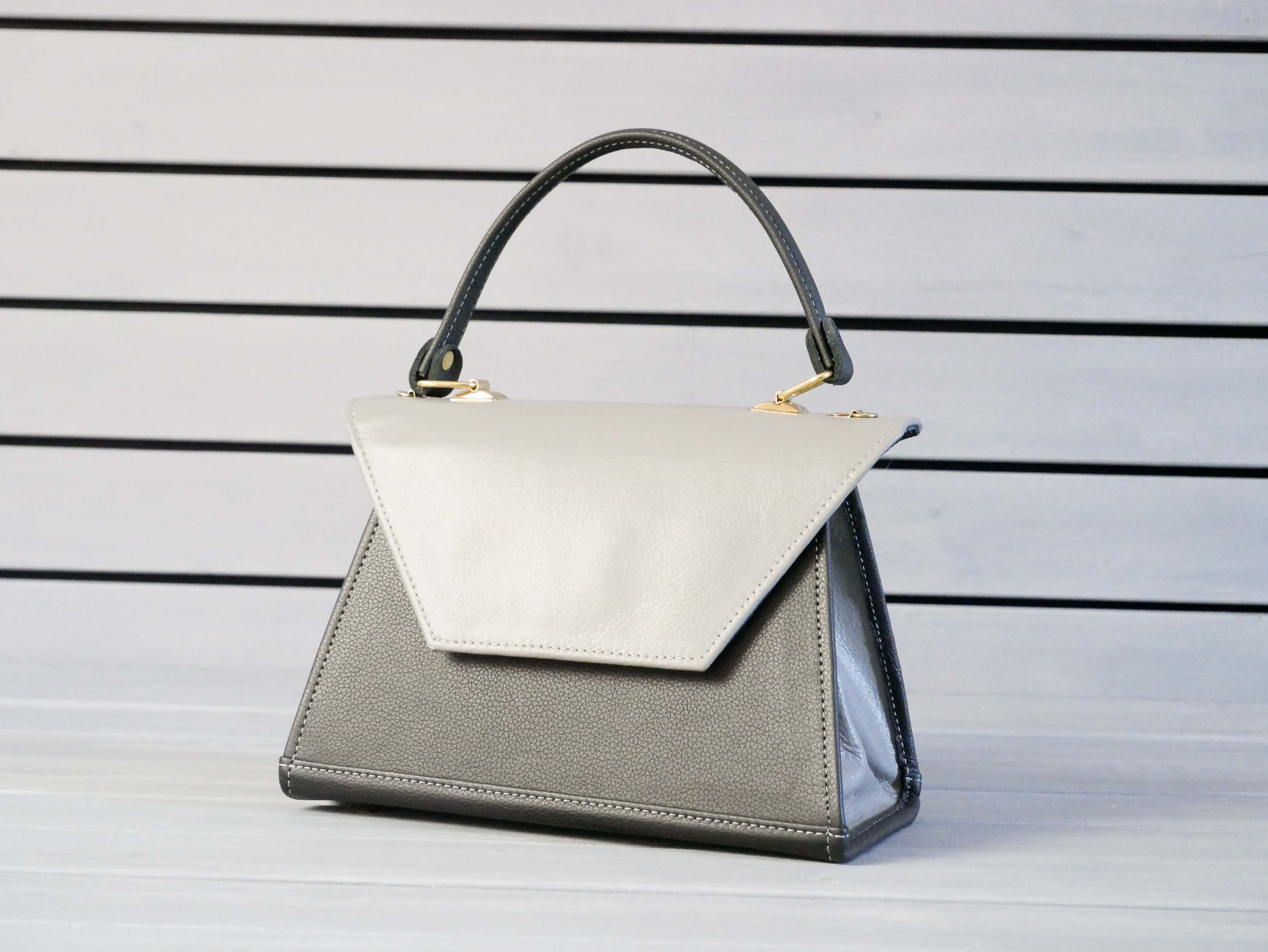 Na krásné věci se holt musí počkat. Tahle kráska čekala rok než jsme ji dovedli k dokonalosti. Elegantní parťačka na sobotní večer, na ples, do opery, na večírek nebo na filmový festival v Cannes. Cokoli. Originální tvar, přesná velikost, žádné přebytečné ozdoby, jen čistá jednoduchost. A materiál? Co jiného než naše poctivá černá hovězinová kůže. Hlavní gró celého výrobku je lichoběžníková klopa a bočnice, které jsou v tomto případě v betonově šedé barvě. Decentní a přesto není nudná.