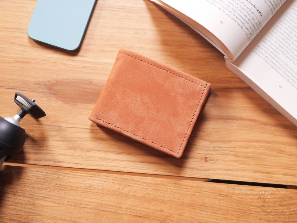 Pánská peněženka je vyrobena z hnědé hovězinové broušené kůže. Verze peněženky s výklopnou kapsou je navržena pro zákazníky, kteří upřednostňují více přihrádek na platební karty a zároveň i kapsičku na drobné. Peněženka tedy má v základním rozvržení oddíl na mince, oddíl na čtyři platební karty a navíc výklopnou kapsičku, která přidává oddíl na čtyři platební karty a průsvitnou fólii na fotografie, doklady či jiné dokumenty. Samozřejmostí jsou i dva oddíly na bankovky předělené přepážkou. Do peněženky se s lehkostí nechají vložit, jak české bankovky nejvyšší nominální hodnoty, tak i eurobankovky.