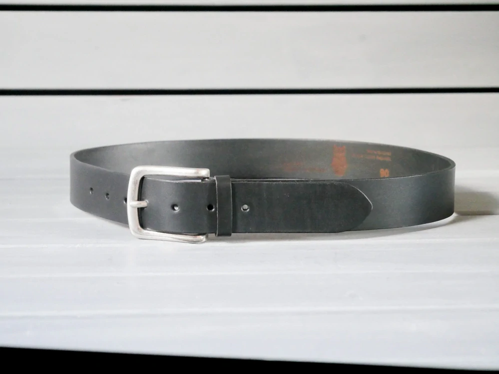Kožený pásek z hovězinové usně - černý - kovová spona.