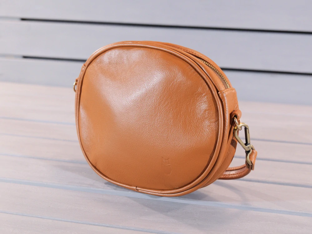 Naše kožené psaníčko je dokonalým spojením šarmu, funkčnosti a kvality. Jeho menší velikost a oválný tvar přináší zajímavý a sofistikovaný prvek do vašeho outfitu. S výrazným držadlem umožňuje snadné a pohodlné nošení a navíc má řemen přes rameno, takže psaníčko lze nosit křížem.
